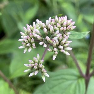 今日のお花 フジバカマ(2025.9.30) *キク科ヒヨドリバナ属 まだ蕾だけど葉と蕾は秋色だ ②ヒヨドリバナ キク科ヒヨドリバナ属 里山の林縁に咲いていた 2025.9.22 フジバカマより早く咲いて 里山に秋の到来を知らせてくれている