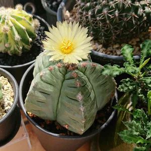 サボテン科 アストロフィツム属 亀甲碧瑠璃鸞鳳玉と、交配種 ギムノカリキウム フリードリッヒィ(Friedrichi)LB2178 hyb😸😽 昨日、夕方撮影しました。😋 咲きそうなんですが、夕方帰宅すると この状態…😅 昼間天気微妙でしたが、咲いてたのかな?…😅 今日も天気は微妙…😅 多分、見れないな…😅