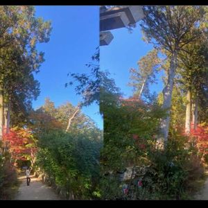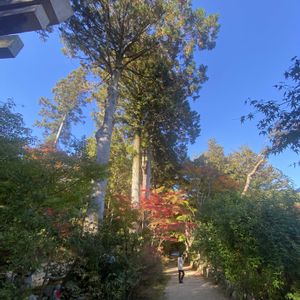 2024.11.21 9:05 長寿寺 今回は一番乗りでやって来ました。 朝日が樹木を照らし青空も最高に綺麗でした🤩