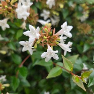 「アベリアと白曼珠沙華」 10月5日am7:34頃 ✧p📷qω•,,´)パシャ✧ 横浜市都筑区佐江戸にて 仕事先の朝礼会場脇に、毎年見られる花なんです。 アベリアは、最近沢山咲くようになってきました。 白曼珠沙華🤭白彼岸花は、昨年よりも増えた気がします。