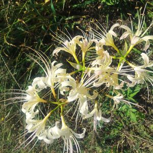 ご近所の彼岸花。 今年は球根を手に入れる事が出来たので、我が家でも植えてみようと思います。来年?再来年?咲いてくれると良いなぁ。 彼岸花は白が一番好き😊