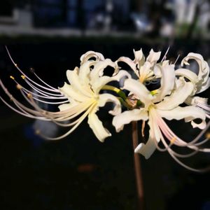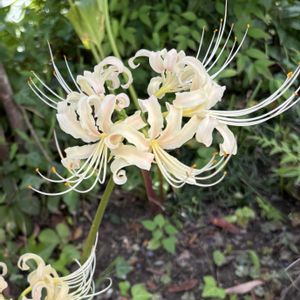 彼岸花に白花があると 知ったのは だいぶ大人になってから🤭 調べてみたところ、 赤い彼岸花が原種で、 白い彼岸花は赤と黄色の彼岸花 (ショウキズイセン)を交配して 生まれた交配種のようです。 凛としていて涼やかですね。