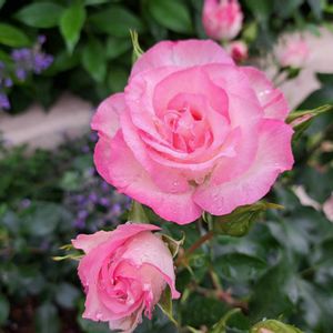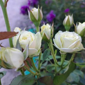 我が家のバラ🌹🌹 同率83位! ①クリーミーエデン ②ザ・フェアリー そしてバラとコラボしている花たち☝ 賑やか〰〰😆