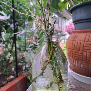 昨季最後に剪定した「シルクロード」の枝を5本水差しに入れていたら内2本から発根してる👀‼ 鉢上げしてみたけど上手くいくかな~😆