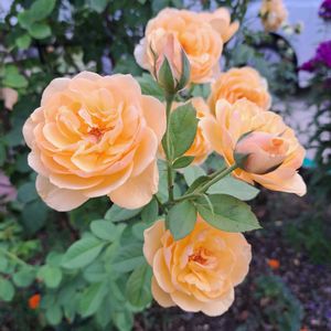 雨上がり朝、綺麗に咲いてくれているER🌹🌹🌹🌹 ①ジュード・ジ・オブスキュア ②レディ・エマ・ハミルトン ③アブラハム・ダービー ④サマーソング ⑤ジュビリーセレブレーション どの子も香りがいい😌