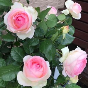 ヨハンシュトラウスが咲き始めました。白に薄いピンクとても素敵。