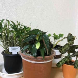 こんばんは🌇去年購入の見切り品、球根ベゴニアサマーウイング❣️花蕾?をつけました❣️見切り品がここまで育ってくれて、嬉しいです。