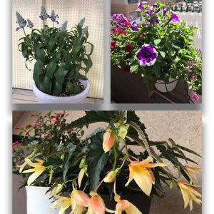 こんにちは😃今朝の1枚。ギョリュウバイも元気に咲いてます♪ベゴニアはそろそろ植え替え必要かなぁ。ネメシアは凄く綺麗に咲いてます♪