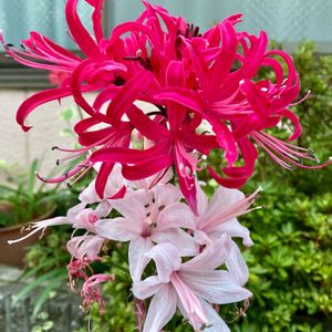 おはようございます😃 晴れ☀️ 今日のお花、ネリネ❣️ 昨年の今頃のpic。 白、赤、ピンクと咲いていました。 花の名前を知らない私は ヒガンバナ⁉️今時分❓などと 思ってました😅 忙しい一日が始まる前に🤳⤴️🎶 良い一日を❣️🤳🎶🚲🚗🚃✈️🤗💐