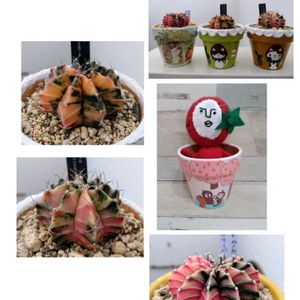 🏷毎月15日はいちごの日 お花見リメ鉢とイチゴマン🍓 可愛い💕 ギムノカリキウム三姉妹 こちらも、可愛いよ。