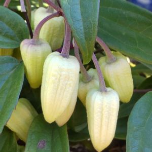 この前緑色の蕾が付いていた冬咲きのクレマチスでしょうか。 そろそろ咲いた頃かと見に行ってみました。 蕾は白くなっていましたが、まだ咲いていませんでした。