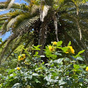 公園の蘇鉄と薔薇 古い蘇鉄の木です
