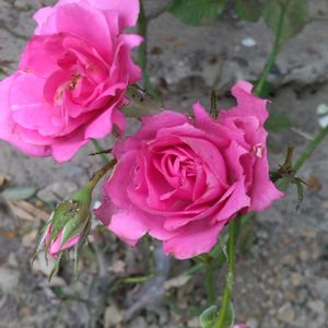 フェンスのつるバラを切って水盤に入れました 中庭に行く通路側はつるバラが垂れて歩けないので一部カットしました 2枚目 昨日のつるバラの塊 カットしたら多すぎて無理矢理水盤に入れました 3枚目 2日前の picです
