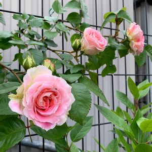 おはようございます ドンヨリしたお天気。 つるバラ咲き始めました。 横に伸びたそうだけど我が家では上に伸びて欲しい。 毎年攻防を繰り広げてます。 名前は相変わらずわかりません。 昔からあります、 ちょっと良い匂いがします。 どちら様かお名前ご存知ですか🙏