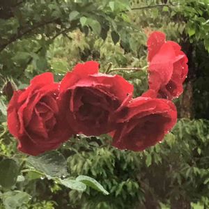 今日は雨☔️ 窓ガラス越しのつる薔薇😸