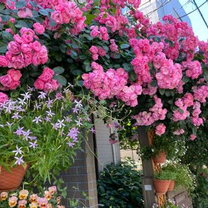 今年もアンジェラはもりもりです( •̀∀•́ )✧ 雨が降る前の1週間前の写真なので、 今は雨の重みと開花の花数が増えたのので もっと下に下がってしまってます。 晴れが待ち遠しいな☀️