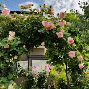 初誘引 お隣さんとの駐車場の境は低いブロックだけだったので、低予算で高くまで誘引できるフェンスが欲しいと、ラティスとアーチ型の支柱みたいなのを組み合わせて設置し、つるバラの誘引完了しました。 バラは今年の春植えたからまだまだ覆うほどにはなってないけど、来春が楽しみです。 手前から オデュッセイア→つるジュリア→レイニーブルー →黄モッコウ→クラウンプリンセスマルガリータ→ピエールドゥロンサール