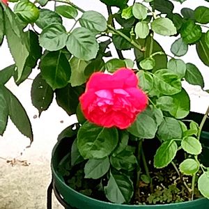 おはようございます。 久しぶりに昨夜から雨が降り続いてます 夕立の一時的な雨は降ったのですが・・・ 今日も農園から 12階 階段のところで鉢植えの 蔓バラです。