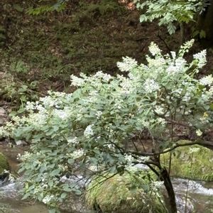 川の中で咲くノリウツギ〜♡ 大好きなお花 涼しげです〜🙆♀️ このお花で 🏷️8日は葉っぱの発表会に参加します🙋♀️
