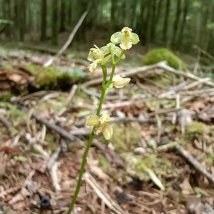 ハコネラン(箱根蘭)ラン科コイチヨウラン属 昨年見た場所に小さなハコネランを探しに行ってきました。 二人で探して30分やっと3株見つかりました。 地面スレスレに1枚の葉っぱをつけ、高さ10cmと小さいです。 お花は8mmくらいと超小さいです。 埼玉・東京・神奈川・静岡県に分布深山の針葉樹林下などに稀に生える高さ10cm前後の多年草。 コイチヨウランに似ているが、花は緑色、唇弁の縁に鋸葉がある。 和名は発見地の神奈川県足柄下郡箱根山に由来する。