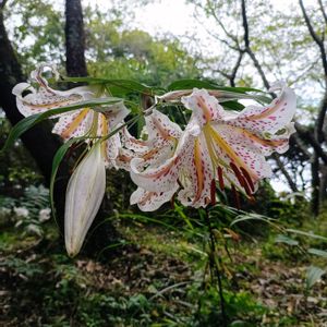 ヤマユリ(山百合)ユリ科ユリ属 ヤマユリが咲き出したと花友さんからラインがきました。 昨日ジムの帰りによってきました。 まだ写真の撮りやすい場所は蕾でした。 1⃣ 中心部が濃いヤマユリ 2⃣ 咲いたばかりのヤマユリ 3⃣ モンキアゲハが蜜を吸ってました。 花粉がベッタリ羽に付いてます。 4⃣ 2m以上あるヤマユリ 5⃣ 帯化ヤマユリ、かなり蕾が付いてます。 満開は今月末くらいですね。 百合の中でも最大級の20cm前後の大輪の花は強い芳香があり、優雅な姿から「百合の王様」と呼ばれとても人気があります。 草丈は1~1.5mになり、大株では10個前後の花を咲かせます。 球根も食用として食べることができ、地上部は香茶として利用されます。 🏷 白い貴婦人✨