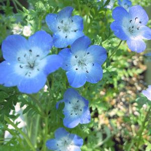 4月に蒔いた種取り用プランターのネモフィラ💠 来年の春は小さな庭をネモフィラの青で染めてみたい…♫