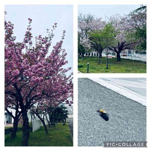 仙台市4月26日 八重桜が見頃です。 熊蜂も忙しそうです。 桜リレーに参加します
