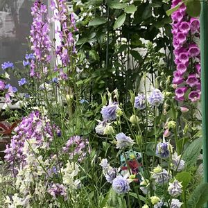 秋に蒔いた種蒔きっ子達が 今、とても賑やかです① 小さな花壇に🌱🌱🌱を植え過ぎ ちょっとゴチャゴチャしてるけど それすらも愛おしく 時間を忘れて眺める日々です あんなに小さな種で 🌱も弱々しかったリナリアが 今ではジキタリスに追いつきそうな勢いに オダマキ・トライライトブルーも たくさんの花が咲きました② 奥にぼんやり見える青い花は エキウムブルーベッダー💙💜🍃 こちらはまた改めてupさせてください 大好きなネモフィラ🩵🍃は おひとり様で飾ってます③ デージータッソーストロベリー&クリームは🧺と花壇のあちこちにpic④ 白のネモフィラと挿し芽のアズーロコンパクトは リングバスケットに植えてオベリスクへ リングバスケットの穴が思ったよりも小さくてオベリスクのテッペンにいます😅⑤ 薔薇も咲き始め 小さな庭が最も華やぐ季節になりました