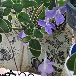 ストレプトカーパス💜➰🍃 去年の秋、挿し芽で育てた苗をいただき 室内で育ててます 茎が伸びると✂️して 直接そのまま鉢へ挿す…を繰り返し ずいぶん乱暴なやり方だったけれど 全部根付いてくれて 今、ポツリポツリと 花を咲かせ始めました ピュ〜んと伸びた先っぽで 可憐な花が揺れる姿が可愛い💕 花付きが悪いのは 肥料が足りなかったから? 慌てて液肥を🚿 場所を変えて 全体を🤳パチリ