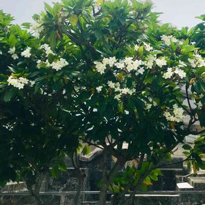 病院裏の駐車場のプルメリアの木。 この1本だけ、いつも満開。圧巻です。