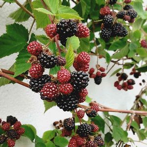 おはようございます☀️ かかりつけの病院🏥 駐車場の壁に ブラックベリーがたくさんぶら下がっていました🫐 鳥🐦さんは食べないのかなぁ🤔