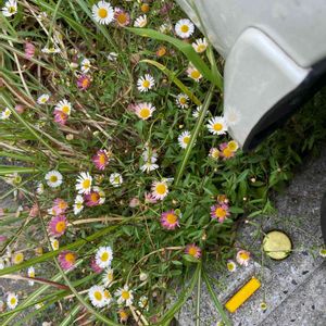 久しぶりの投稿です これは病院の駐車場の車止めに懸命に咲く 多分 ヒメジオン 驚きと感動でした🥺 エリゲロン、源平小菊だと教えて頂きました ありがとうございます🤗