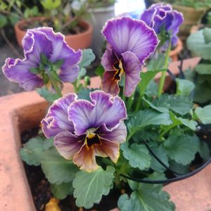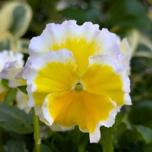 ビオラ エッグタルト💛🤍🌿 ようやくお迎えすることが出来ました💖 この唯一無二の可愛さ、たまりません😆💕 3枚目はヌーベルヴァーグ ラピスラズリ💜 どちらもサトウ園芸さん。 アントワネットロココも並んでいて😍 我が家にはゴージャス過ぎるので目の保養だけさせいただきました😁😅 🏷️ビオラ・パンジー祭り♪