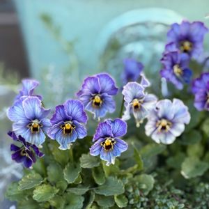 種まきっ子ビオラ I枚目 去年宮崎のアナーセンで購入したレディ。 3株のうちの2株。③と②と記入してあるのはみどりのまとめで親株につけた番号です。 レディは、親株とは違う花色のが開花する可能性があるけど、顔はしっかりとしたレディです。 右下のふわふわ金魚ちゃんは、2枚目にズームした写真を載せました。 2枚目 ふわふわ金魚ちゃん。 親株はもっと水色濃かったけど、ネットで調べるとこんな色合いのもありました。 ふわふわ金魚ちゃんは、初めての種まき、開花なので嬉しい🥰 3枚目 奥のは、アンジュ。4年目でようやく好きな色合いのアンジュが咲いてくれた(*ˊ˘ˋ*)。♪:*° ラピスラズリの開花を待ってるのですが、右下のがそれらしいがイマイチかな…🤔💭 左下のは、アンジュっぽい。ラピスラズリではないような気がする。 種まきを今年は簡単にしようとして、植えていた品種の零れ種の鉢からの発芽やミニプランターに数品種一緒に蒔いたりしてるので、タグづけしたのとは違う花が咲いてる😅 種まきはセルトレイか種まきトレーを使用した方が、タグと違う花が咲くようなことないだろうと反省してます😔 🏷️青い花でゆく年くる年'25-'26