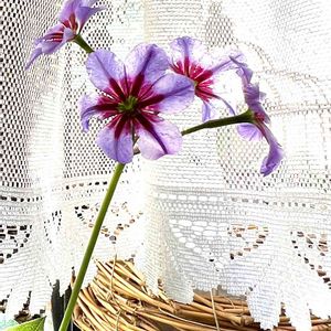 リューココリーネ 星型の花びらが逆光で透き通っています 一本入っているだけで、周りに伸びやかな空気を醸し出してくれる花💜 百合科または彼岸花科で、 英名は、Glory-of-the-sun 太陽の光‥☀️ お日様に向かって茎がひゅるんと伸びてるところも💕