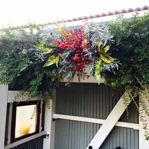 お友達のところで、スワッグを作りました 玄関のサイズに合わなくて、自転車置場につけました 来年は、ちゃんと測ってから作ろう(苦笑)