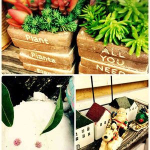 Xmasっぽくセダムの寄せ植え(⍢)♡‼︎ 紅葉した葉っぱも挿してみたよ♪(๑ᴖ◡ᴖ๑)♪ 娘が雪うさぎを作ってました❄️