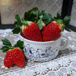 🐾 毎月2日は スヌーピーの日 ฅ(・¨ (●)💕 今年はスヌーピー 生誕75Anniversary Year✨ コンビニでスヌーピーカップが2個付の料理本を見つけてget! 仙台いちご ® にこにこベリーを盛り付けて ✧p📷qω•,,´)パシャ✧ こんなにふさふさの葉🍀が付いた苺🍓は珍しい👀 ジャムを作ろうと思ったけれどそのまま食べたいわ🤤