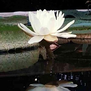 8/26(土) 夢の島熱帯植物園 夜間開館にて。 今年初めて咲いたオニバスにちょうどお目にかかれました‼ 2日間しか咲かず、翌日はピンク色になるのだとか…❤
