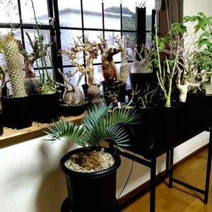 毎日暑すぎます。 ベランダのコーデックス達は元気いっぱい。 ただ、気温30℃を超えると生育が止まる気がします。 高温乾燥の好きなマダガスカル植物達も日本の真夏は暑すぎるようです。 展示会まであと少し。 問い合わせもたくさん頂いているようで大変嬉しく思います。 ✃−−−−−−−−−−−−−−−−−−−−−−− 【コーデックス多肉植物展】 場所 愛媛県今治市 緑の相談所 日にち 8月6日㈯10時~ 8月7日㈰9時~ (私の投稿欄にポスター有り) ⚠新型コロナウイルスの感染を防ぐ為、手指消毒、マスクの着用を必ず宜しくお願い致します。 ⚠時間帯によっては人が混み合う為、展示室に入る人数を制限させて頂く場合があります。 ご了承下さい。 去年、展示会に足を運んで下さった方にも楽しめるように、少しではありますが、今回新しい植物も増やして展示する予定です。ぜひ多肉、塊根植物がお好きな方、興味のある方はお誘い合わせの上、ご参加下さい。 拡散お願いします。