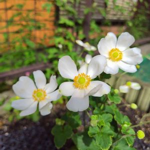 おはようございます☀ 秋明菊 並んで咲いています 可愛い❤