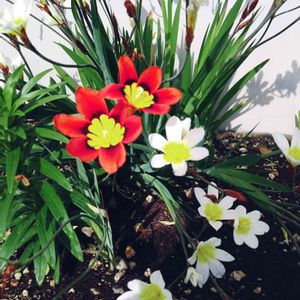 おはようございます☀️ ご近所さんの玄関前に 紅白で咲いています😊