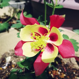 おはようございます☀️ 紫に続き、赤&黄色のオダマキも咲きました😊