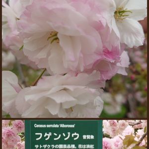 4/13㈭⑥ 八重桜 普賢象(ふげんぞう) 雌しべが葉化したものが2本花から突き出ています。これを、普賢菩薩が乗った象の牙に見立てたそうです。 花色は白からピンクへと移ろう優しい雰囲気です🌸🤍💓🌸
