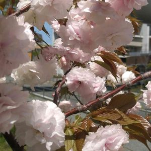 なかなか、他の方の投稿とか、私へのコメント見る間も無くてご免なさい。 久しぶりの職場で咲いてた八重の桜。まるでバラのように。 皆様への感謝のしるしとして投稿しますね。 🏷️2023桜さくらサクラリレー 今週末には皆さんの投稿も見れるかも。 月末は親父の一周忌のお寺参り。何かしら花を写せればね。