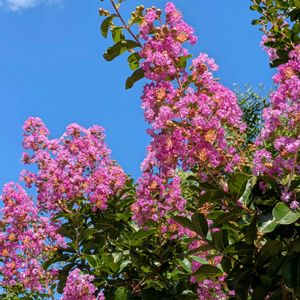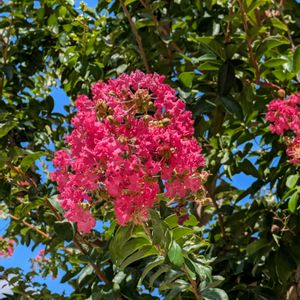 今日のお花💖 レッド、ホワイト、ピンクのサルスベリとブルーの空(◍•ᴗ•◍)❤