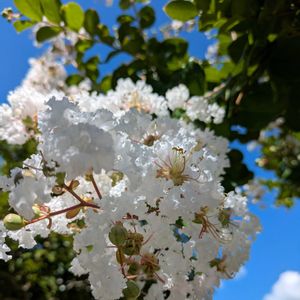 白い花と青い空💙 白い色って涼しそうです😊 食欲なくて果物ばかり食べています🍉🍍🥝🍇