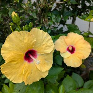 遊歩道にピンクのムクゲが一つだけ☺️ 日曜日にお水が不足していた遊歩道のツワブキ🌿 色は悪いけれどちょっと元気になったようです(◍•ᴗ•◍)
