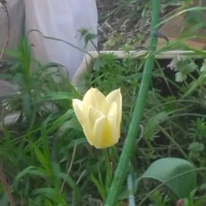 2024.03.31 ①雑草生い茂る我が庭。 雑草の間から チューリップ🌷😮 去年の球根、 堀忘れ😥 3期目のチューリップ🌷 咲いてくれて ありがとう❤ ②③周囲の雑草を取りました