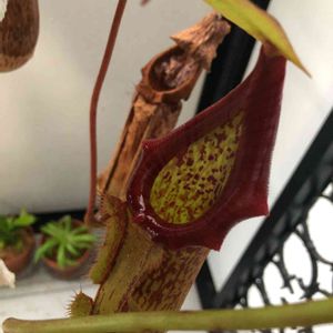 ネペンテス・ミランダのピッチャーは、こんなに小さな子株でも大きいんですよ〜🥰 柄がイマイチ? 🥺💦そー思う?やっぱり?